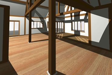 click to enlarge • a selection of computer generated images of our two projects in matakana, due to start in april 2005. the bigger project is a light earth construction within a traditional timber frame.